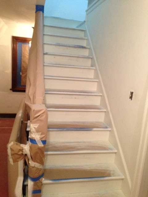 The painter is starting on the woodwork Monday. He has been at the house all week taping and sanding so that he can spray the wood starting Monday. We are so excited. I think just the white wood will lighten everything up so much and give this great house a fresh, new look. It's been nice having him there working on the house during week because it feels like we are making progress, but we don't have to be the ones there doing it.